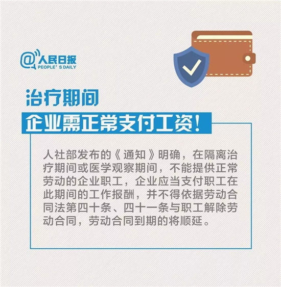 上述意见明确,对因依法被隔离导致不能提供正常劳动的职工,要指导企业按正常劳动支付其工资;隔离期结束后,对仍需停止工作进行治疗的职工,按医疗期有关规定支付工资。