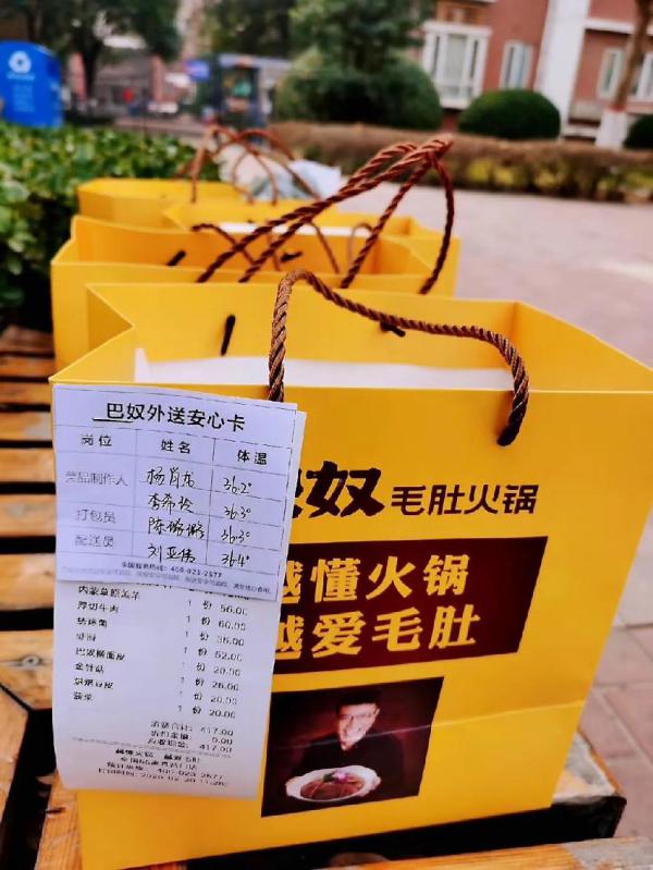 杜中兵说,现在做的是外送,不是外卖,疫情结束后就停掉。
