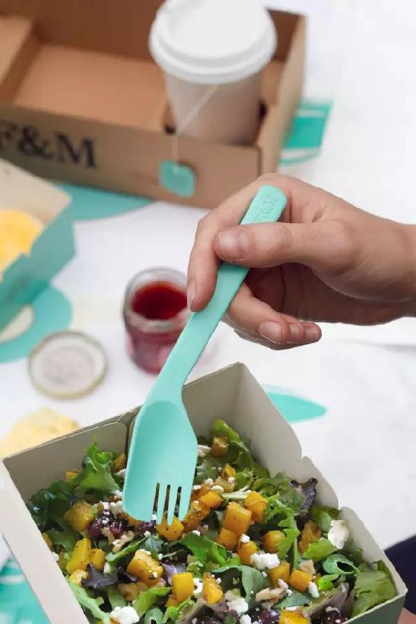 英国设计工作室 Map Studio 为百货公司 Fortnum & Mason 设计了一款特殊的餐具,通过分析fortnum &mason这家商店内的食品大厅以及茶品沙龙,Map制定了设计策略,将沙拉用的叉子,甜品用的勺子以及用来切割与搅拌的刀集于一体。