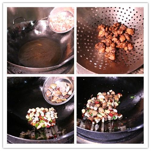 1.先将油锅烧热,倒入油加热,将鸡肉切块炸熟备用。