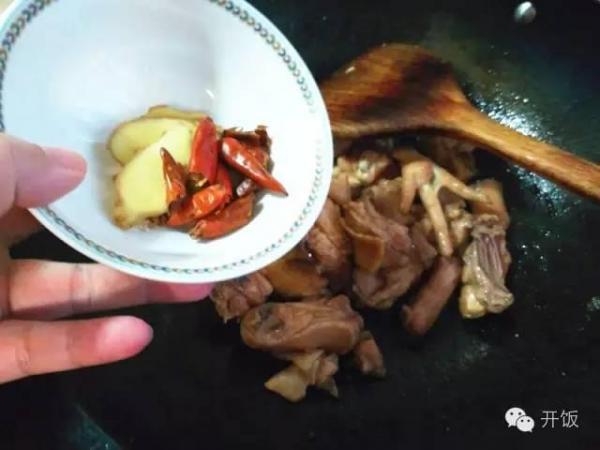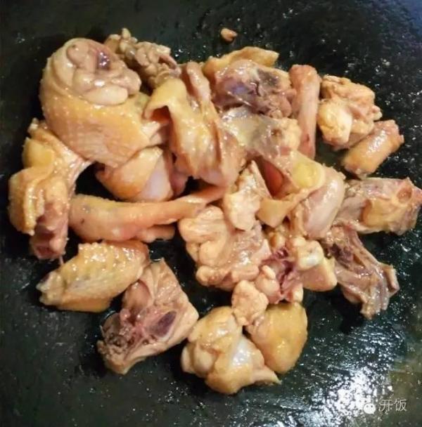 2、油锅烧热后,下鸡肉中火煸炒至水气渐干,转大火烹入料酒