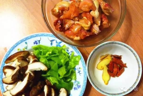 鸡肉(可以专用鸡腿)、青椒、香菇、红辣椒、姜